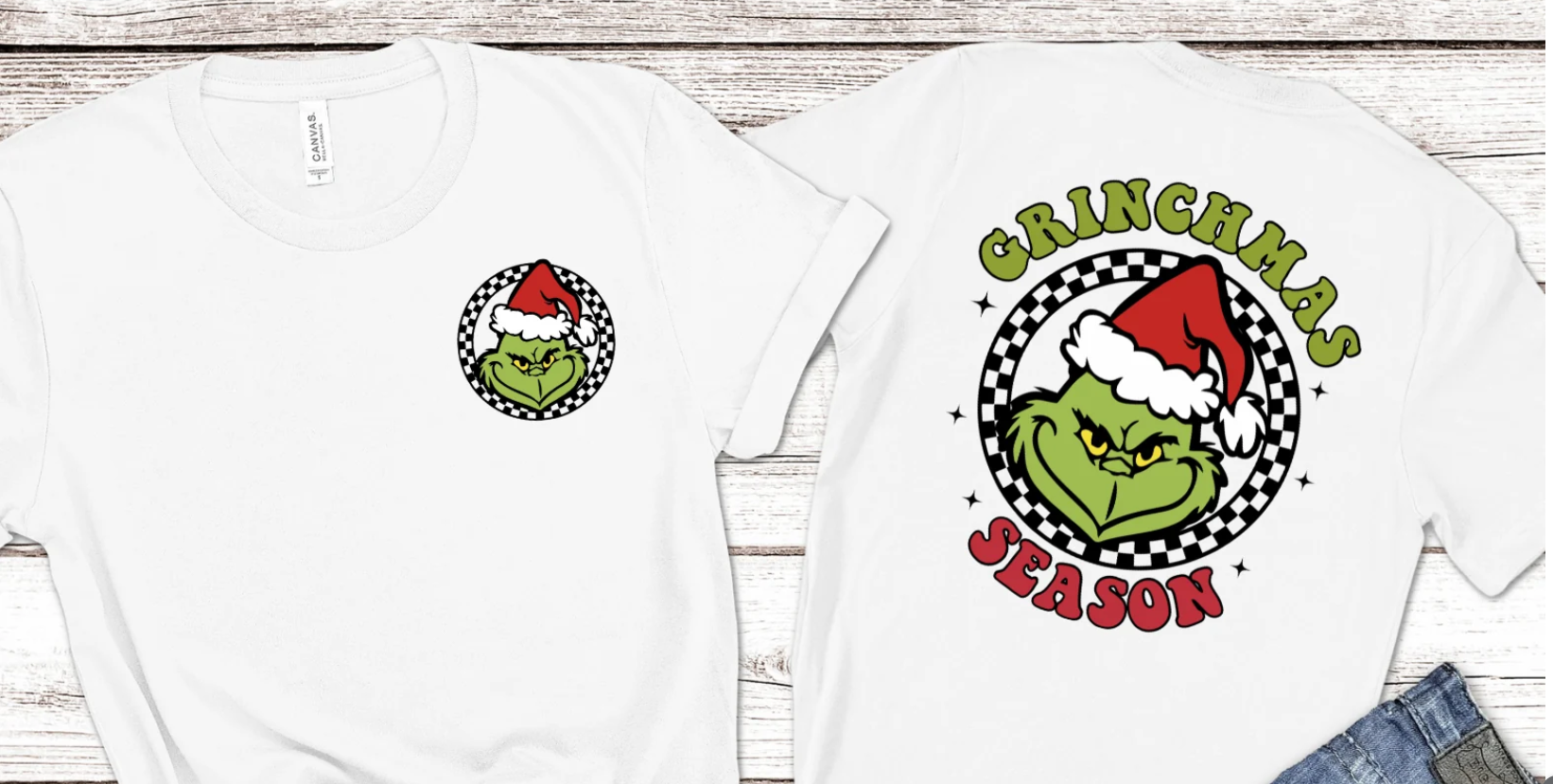 This Grinchmas Season shirt features a front and back print that embodies the holiday's festive spirit. The crisp and vivid design is sure to bring more joy to your celebrations.