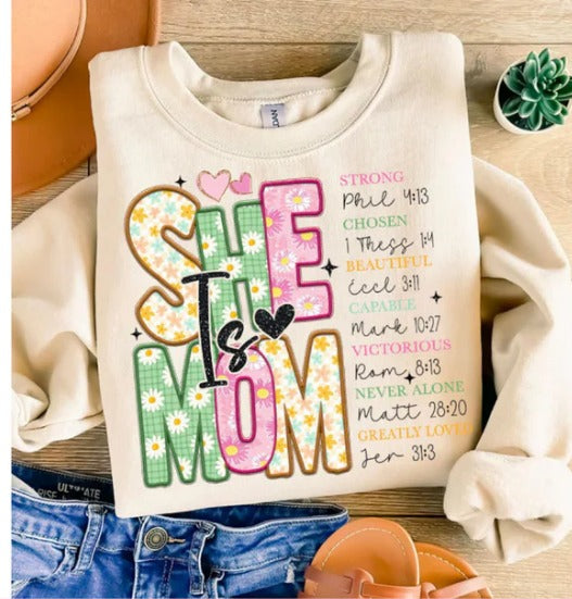 This shirt is the perfect gift for the strong, faith-driven mom in your life. Featuring inspiring Bible verses printed on soft and durable fabric, "She is Mom" is a reminder of her strength and devotion. Show your appreciation and love with this unique and heartfelt shirt.