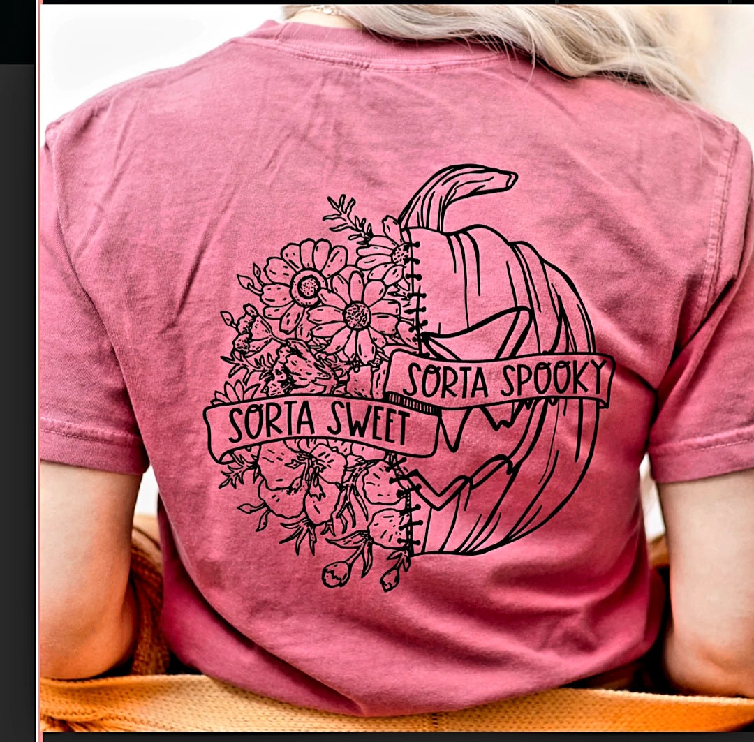 Our Sorta Sweet Sorta Spooky t-shirt is the perfect Halloween look! Featuring a unique print, it's sure to make a statement while staying comfortable. The combination of a sweet and spooky style is the perfect way to kick off the holiday season.