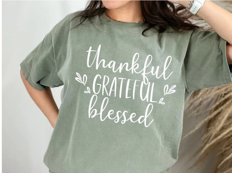 This Thankful Grateful Blessed White Print shirt features a crisp white print on a comfortable cotton fabric. With its inspirational motto, it's the perfect piece for day-to-day wear. The lightweight fabric ensures all-day breathability and comfort, while the bold lettering conveys a simple yet powerful message.